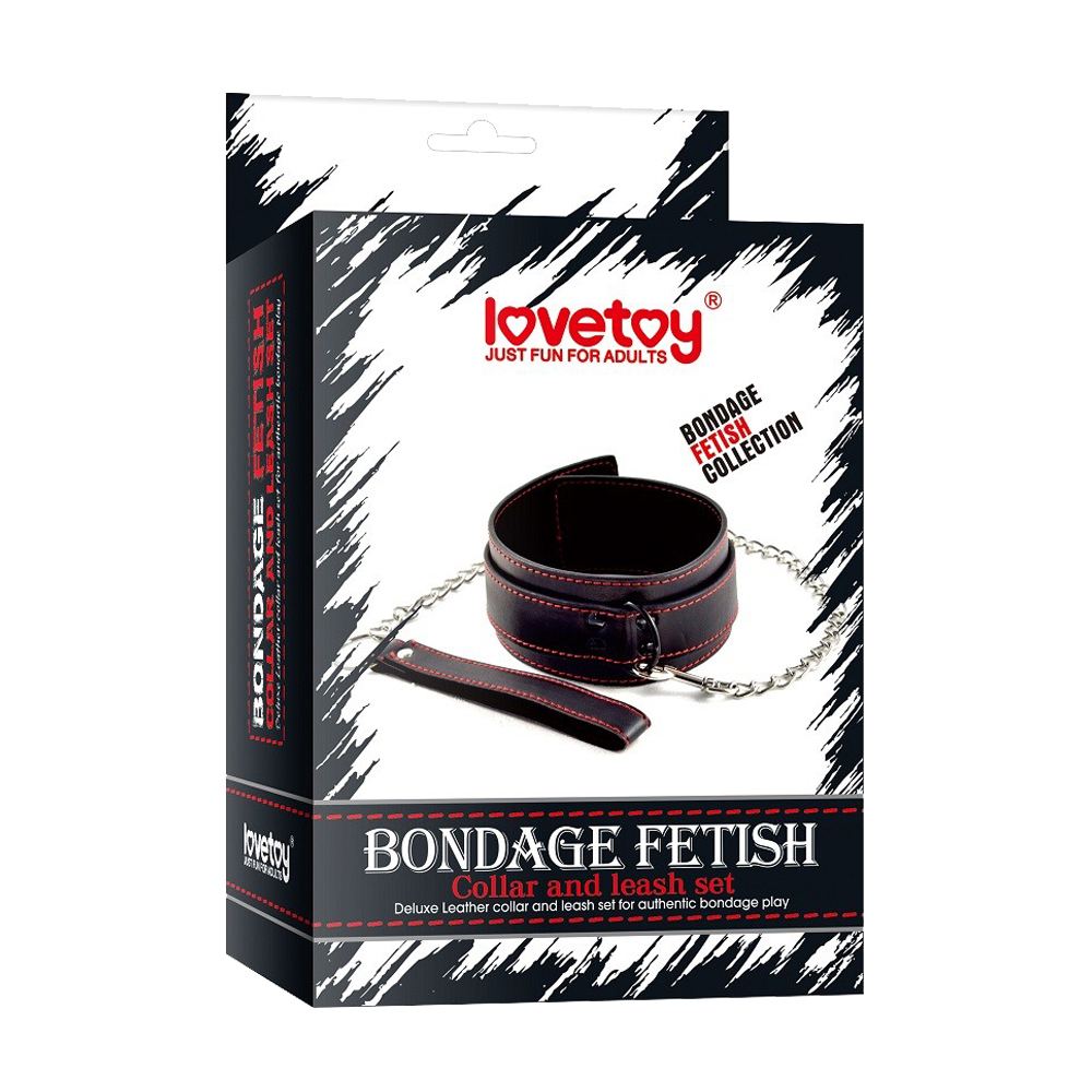 Odważna obroża na szyję z możliwością regulacji. Posiada długą, srebrną smycz zakończoną uchwytem do trzymania. Można ją przypiąć z przodu lub z tyłu za pomocą karabińczyka. Obroża została wykonana z wytrzymałego i solidnego, czarnego, skóropodobnego materiału ozdobionego czerwoną nitką. Posiada możliwość regulacji w celu idealnego dopasowania do szyi. Jej wewnętrzna strona została wyściełana dla wygody użytkowania. Na środku obroży znajduje się kółko umożliwiające podpięcie smyczy. Smycz posiada metalowy łańcuszek oraz skóropodobny uchwyt umożliwiający wygodne trzymanie w dłoni. Można ją również podpiąć do innych obroży lub uprzęży BDSM z tej samej serii.