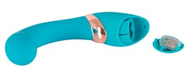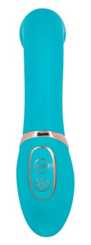 Stymulacja wibracyjna dla Niej!Ten turkusowy wibrator trafia w Twoj punk G bez żadnych problemów, może również masować łechtaczkę w kojący i satysfakcjonujący sposób. Aksamitna miękka silikonowa powierzchnia jest absolutnie niesamowita. Zakrzywiona zabawka ma lekko elastyczne ramię i można ją bardzo łatwo kontrolować za pomocą dwóch przycisków! Jest to niezwykle przydatne, ponieważ ten wibrator ma 7 różnych trybów intensywności (od cudownie łagodnego do niezwykle potężnego). Całkowita długość (zakrzywiona) 15,5 cm. Ø 2,3 do 3,3 cm.Materiał: silikon, ABS z powłoką PU (bez ftalanów zgodnie z rozporządzeniem UE REACH).Nie zawiera baterii: 2 x AAA.