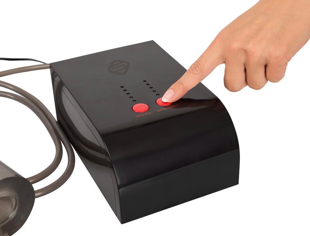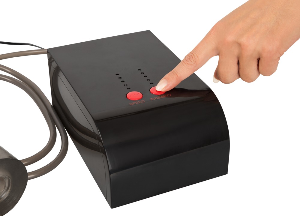 Ignite your blow job turbo! Blow jobs will now be even better and completely hands-free! The innovative HANDS FREE MASTURBATION TECHNOLOGY with interval-controlled stimulation makes this possible. You won’t have to do the typical hand movements if you have the Suck-O-Mat – all you have to do is just lie back and enjoy. Powerful pump/suction impulses make the soft, flexible silicone sleeve move up and down the penis in an automatic, rhythmic way – it feels like a passionate mouth is providing hot pleasure… Wow! In addition to that, the integrated pleasure ring will increase the wonderful sucking sensation! But it gets even better: you can enjoy your blow job in 25 different ways, thanks to the 5 intensity levels and 5 speeds – something a man can normally only dream of… The suction impulses per minute go from 42 on level 1 up to 109 on level 5. The suction power increases at the same time – from 16 W to 30 W. Amazing! The powerful electro-motor is protected inside the discreet black case. The case is in a piano lacquer look and is a handy size: 20 cm long, 13 cm wide and 8 cm high. The electricity cable with a plug is 2 m long and the length of the tube up to the sleeve is 1.5 m – all in all, a considerable radius. The sleeve is, of course, washable just like the filter that protects the motor from fluids. Includes an AC power adapter 100-240 V (European plug). Material: ABS (case and buttons), silicone (tube), TPE (sleeve), PP (filter). How to enjoy it: Apply plenty of water-based lubricant and then insert your penis halfway into the soft, flexible sleeve of the mains-powered masturbator. Then set the speed & intensity, relax and enjoy!