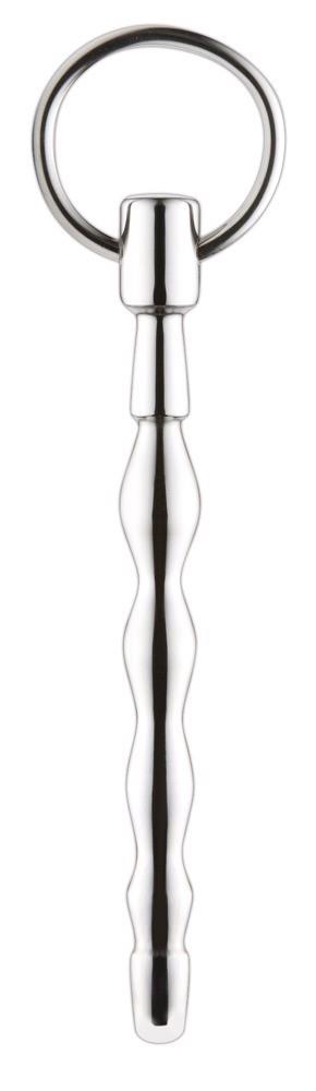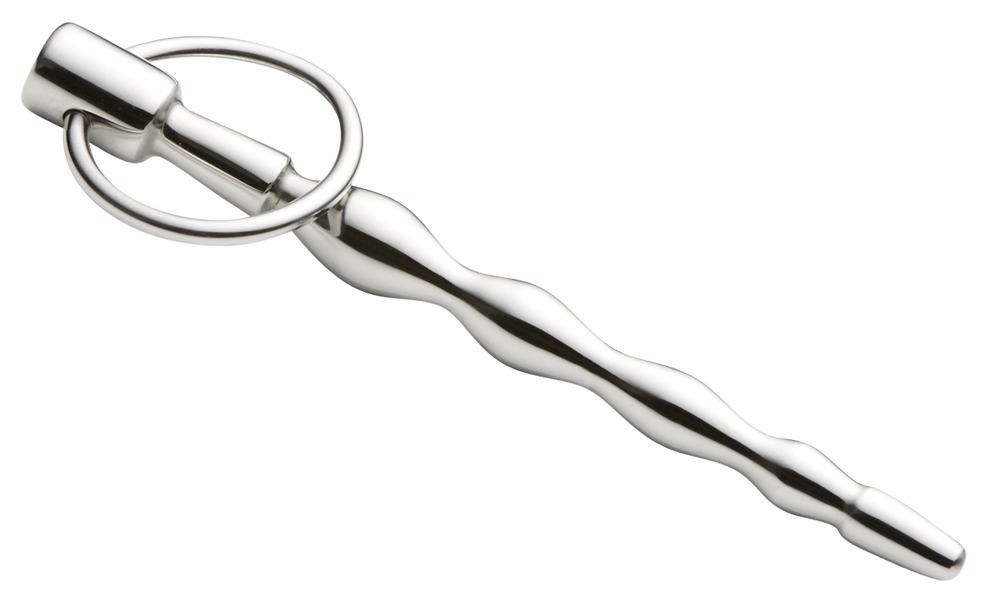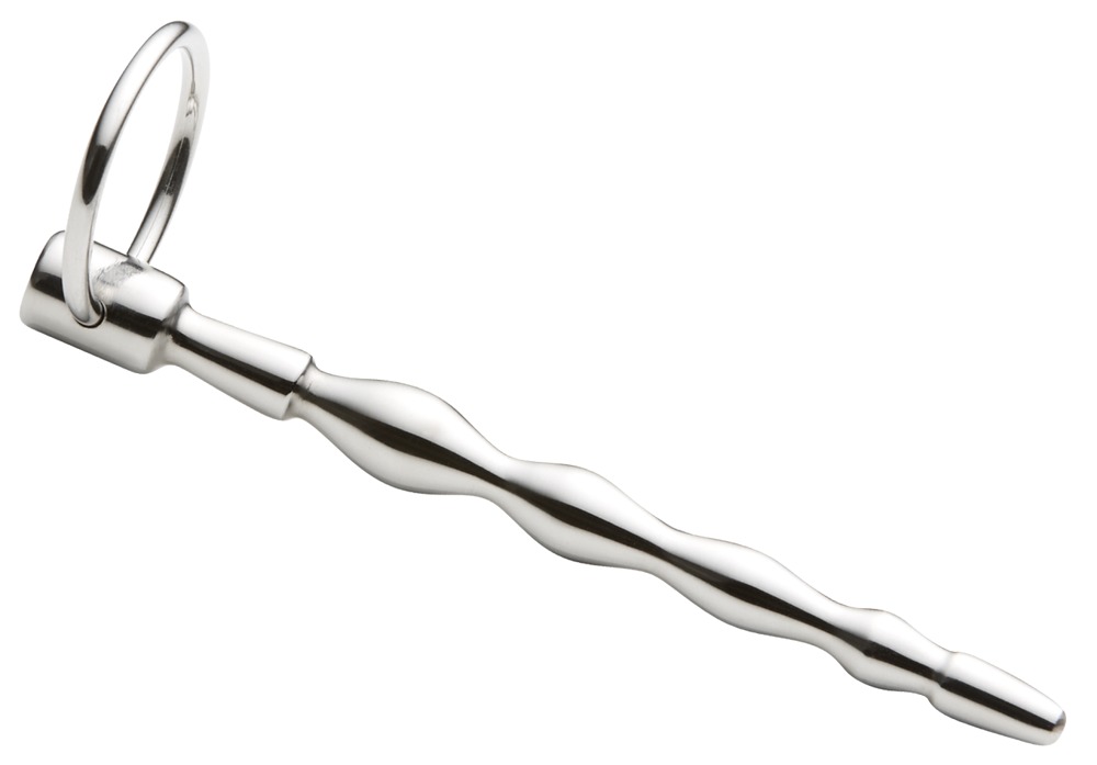 This is the way to lead someone around! This penis plug stimulates the urethra with its wavy structure that increases in size. The highlight is the movable ring on the stopper. It makes removal easier and makes exiting games of control possible. Complete length 13.6 cm, insertion length 9.8 cm, Ø 0.6-1.1 cm. Steel.