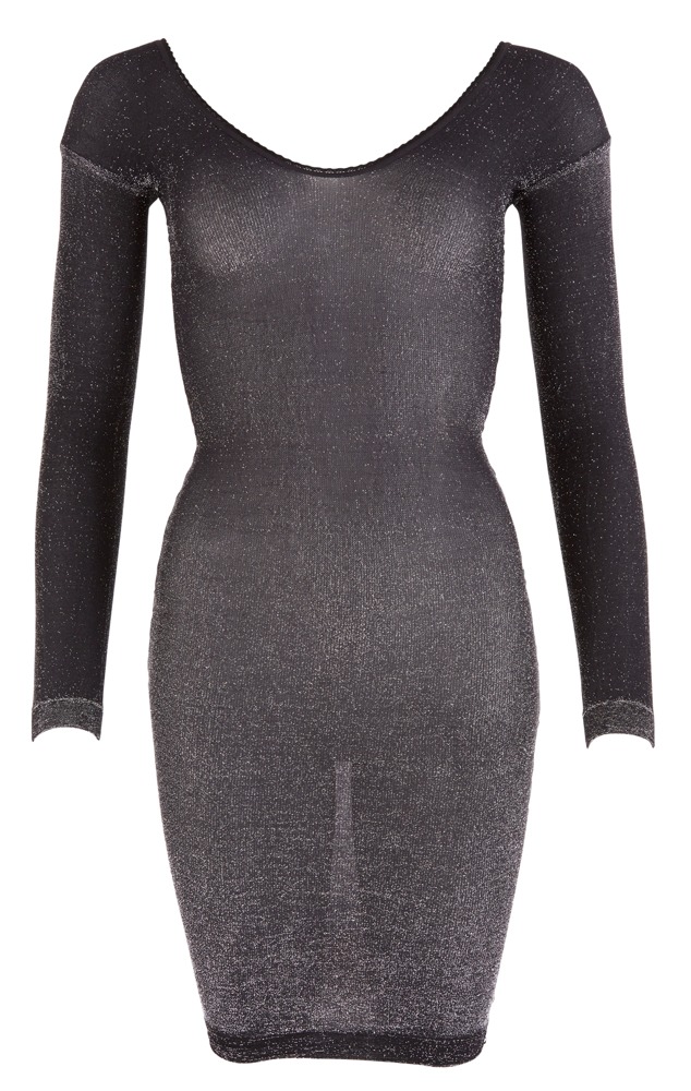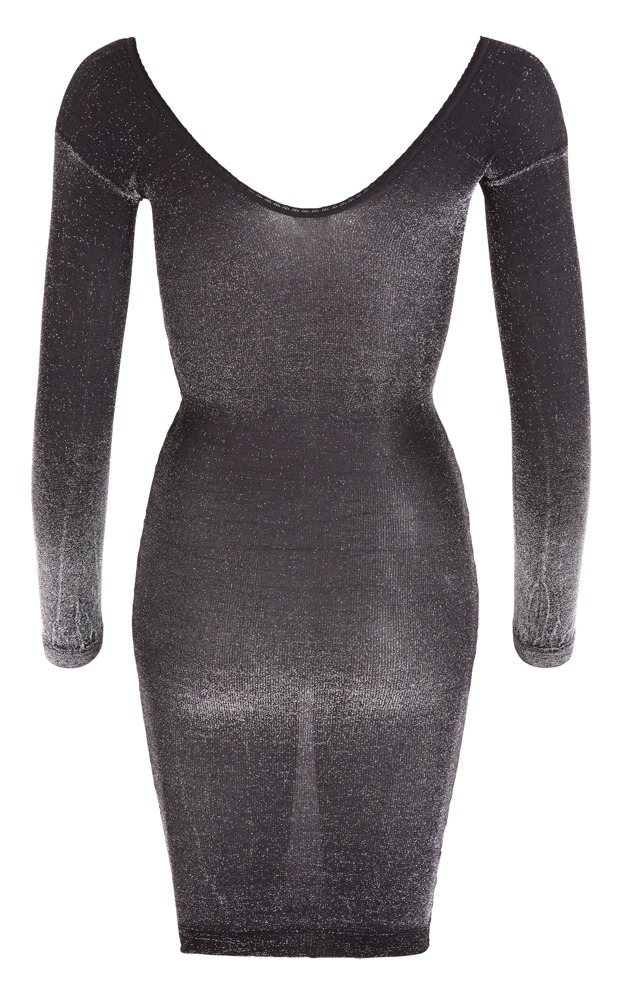 Make your sexy curves shine! Flattering black dress in a silvery glitter design. Knee-length and with long sleeves. Fits like a second skin. 100% polyamide.