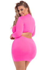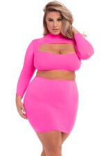 All it takes is two simple pieces of clothing, and you’ll be the center of attention with the Stop & Stare 2 Piece Skirt Set. It all starts with a top that features a high neck and long sleeves.Don’t let that fool you, though, a large cut-out section lets you fearlessly offer a bold look at your breasts! Pair this with a simple skirt that hugs your curves and lets you sashay and sway your hips in comfort and style, and you’ve got everything you need to have everyone stopping and staring at just how fine you look!2-piece top and skirt setLarge cut-out lets you offer an awesome preview of your breastsSimple skirt hugs your form and is great for movementMaterial: 94% Nylon and 6% Spandex for a comfortable fitClick here for the Pink Lipstick Size Chart Fabric care Hand wash in cold water Do not dry clean Do not bleach Line dry Do not iron
