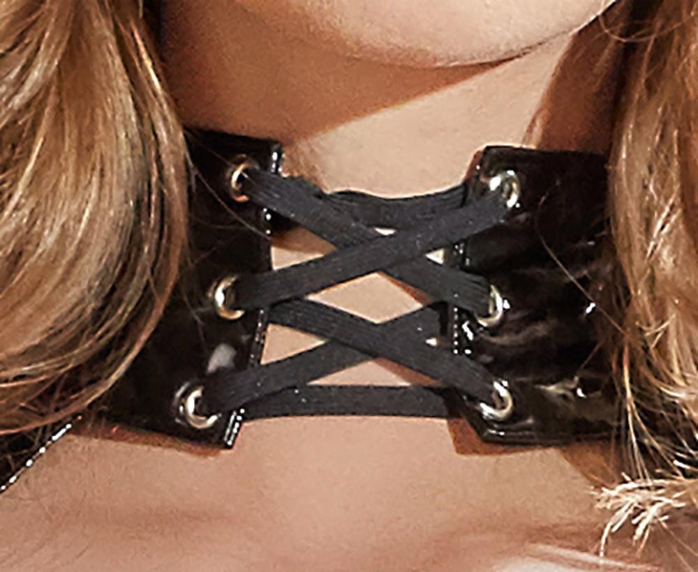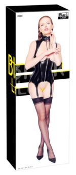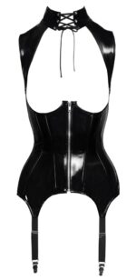 Straightforward and seductive!This shiny black vinyl basque with open cups from Black Level puts the breasts in the limelight. The breasts are also supported by the underwired cups. The integrated shaping bones guarantee a perfect fit and the adjustable lacing at the back is a real eye-catcher – just like the lacing at the front of the collar. The full-length zip at the front makes this basque easy to put on and take off. The suspender straps are adjustable.100% polyester, polyurethane coating. Without string and stockings.